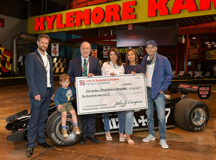 We also arranged for Councillor Michael Watters to meet us there, representing the Lord Mayor, and Chester got some more superb shots of John and his family presenting the Hospital with a cheque for €10,000. Once this was all over and we had dispatched the F1 car to Mondello, it was time to have some fun, and the team all enjoyed some well earned refreshments and of course a quick spin in the karts!