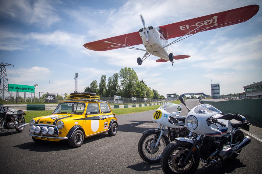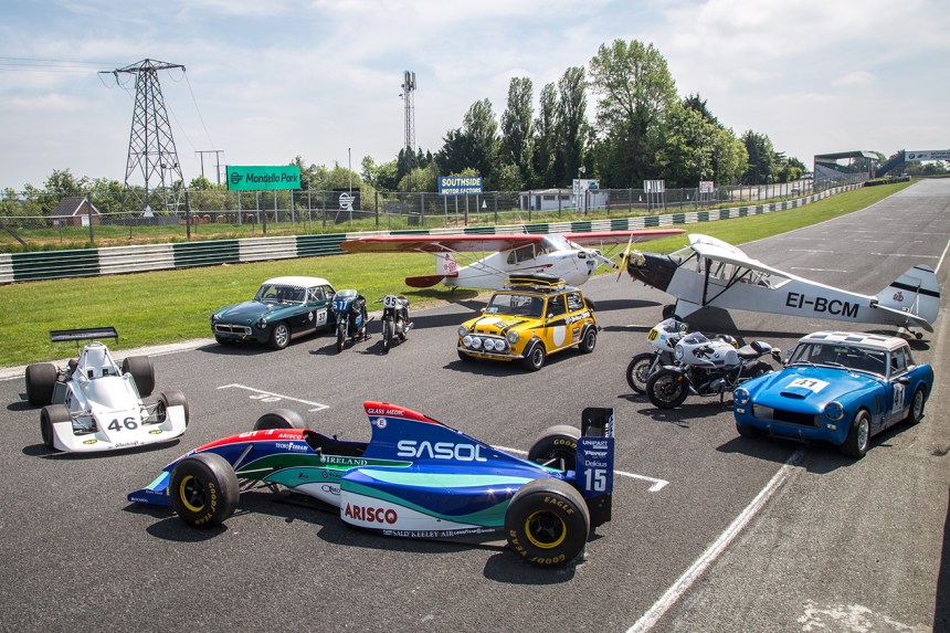 We held a photoshoot on the main straight of the circuit with various relevant cars, motorbikes and airplanes, as well as local luminaries and personalities from the sport. Images are from Celtic Photography.